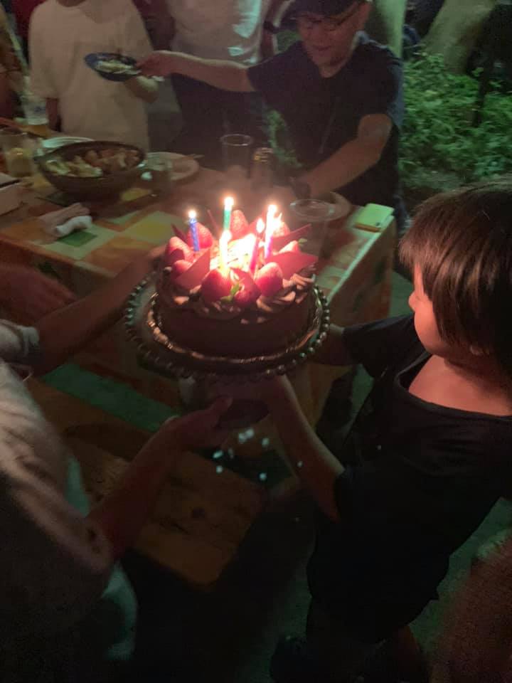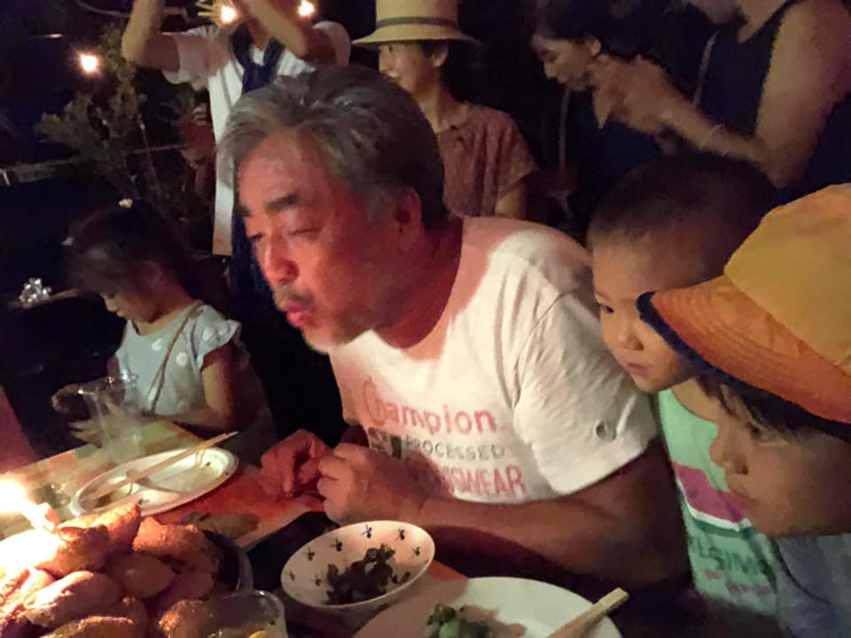 サプライズの誕生日に小さいのが自転車でやってくるようになった、、、奇妙な気持ちになりながらローソクいっぱいのチョコケーキや62個のお稲荷さんや顔写真入りのケーキなど最後はぐちゃぐちゃになりながら近所の子供たちに祝ってもらいましたw